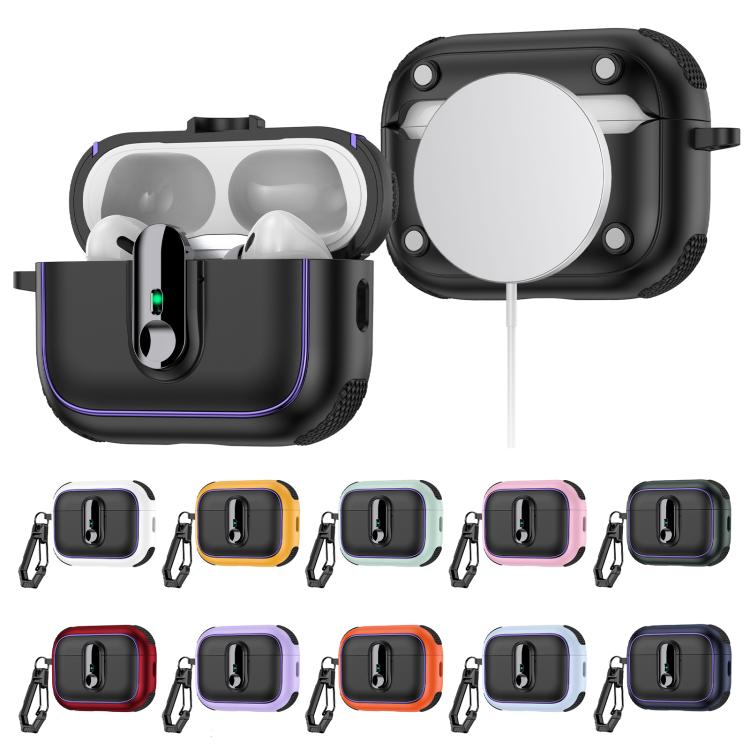 For AirPods Pro 2 Armor Magnetic Wireless Earphones Case with Security Lock(Black Dark Blue)