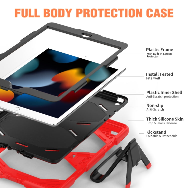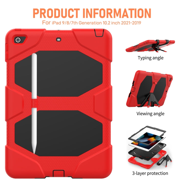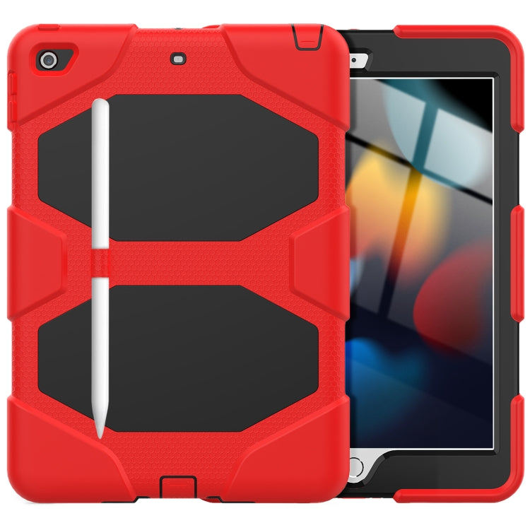 For iPad 10.2 2021 / 2020 / 2019 Shockproof Colorful Silicone + PC Protective Case with Holder & Pen Slot(Red)