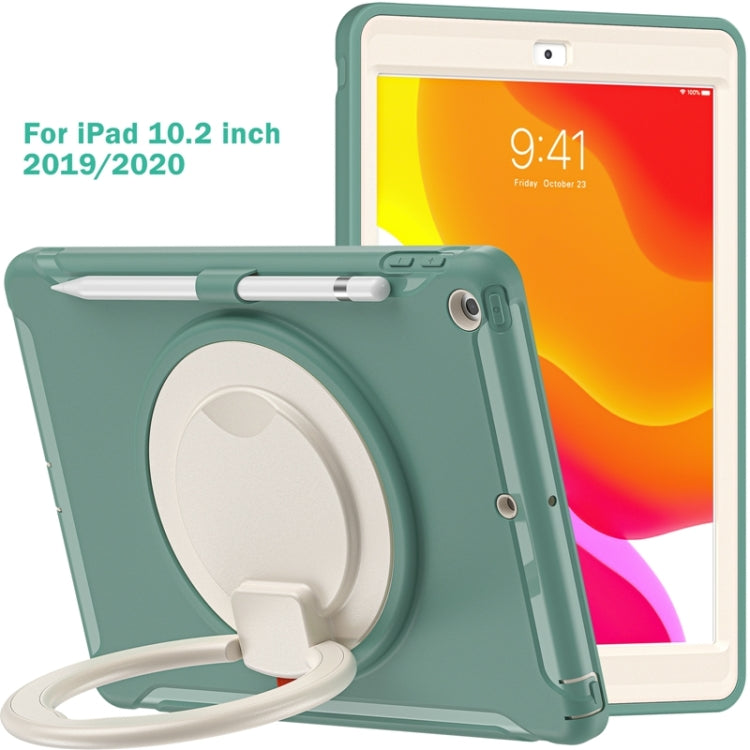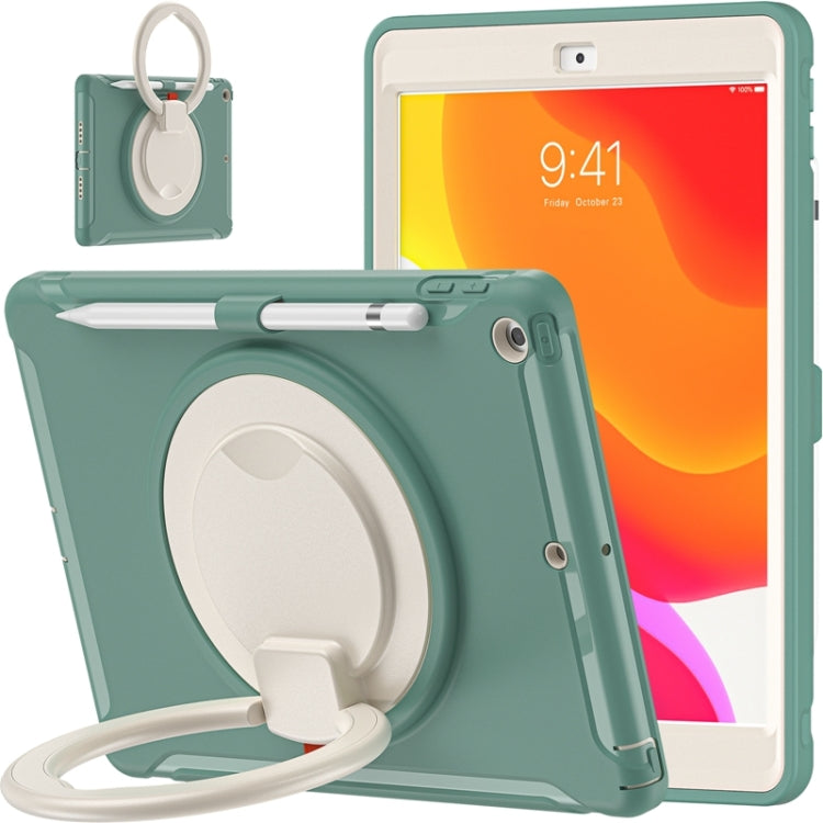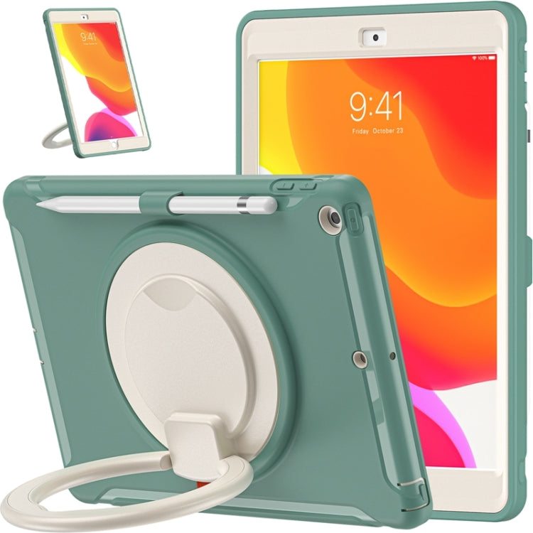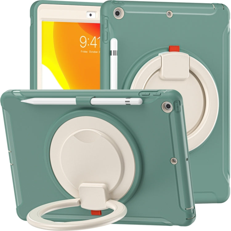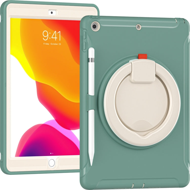 For iPad 10.2 2021 / 2020 / 2019 Shockproof TPU + PC Protective Case with 360 Degree Rotation Foldable Handle Grip Holder & Pen Slot(Emmerald Green)