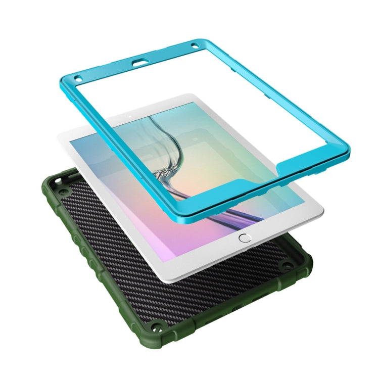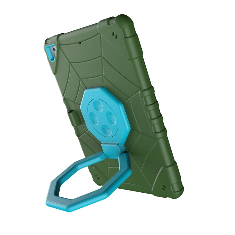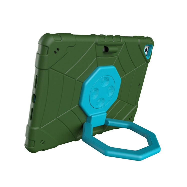 For iPad 9.7 2018 / Air / Air 2 Spider Turntable Handle Stress Relief Tablet Case(Army Green Blue)