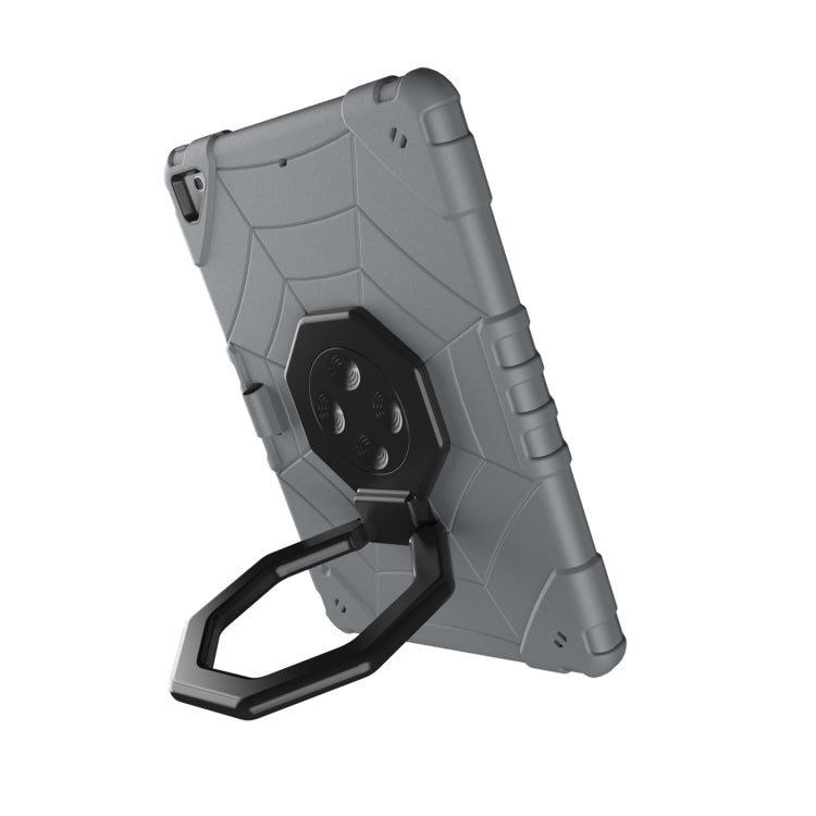 For iPad 9.7 2018 / Air / Air 2 Spider Turntable Handle Stress Relief Tablet Case(Grey Black)