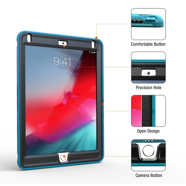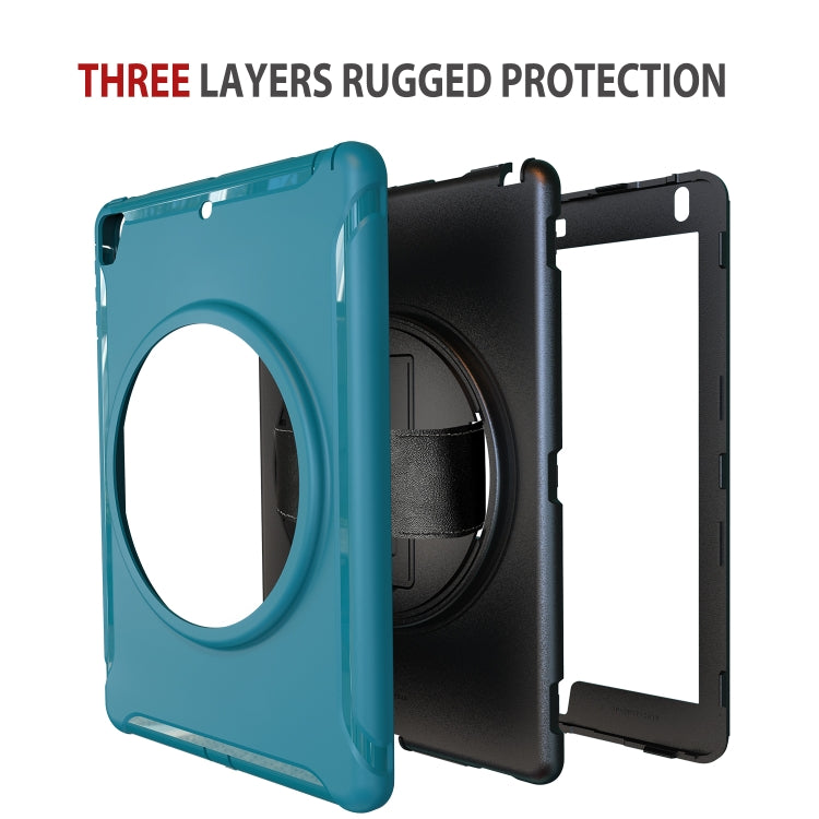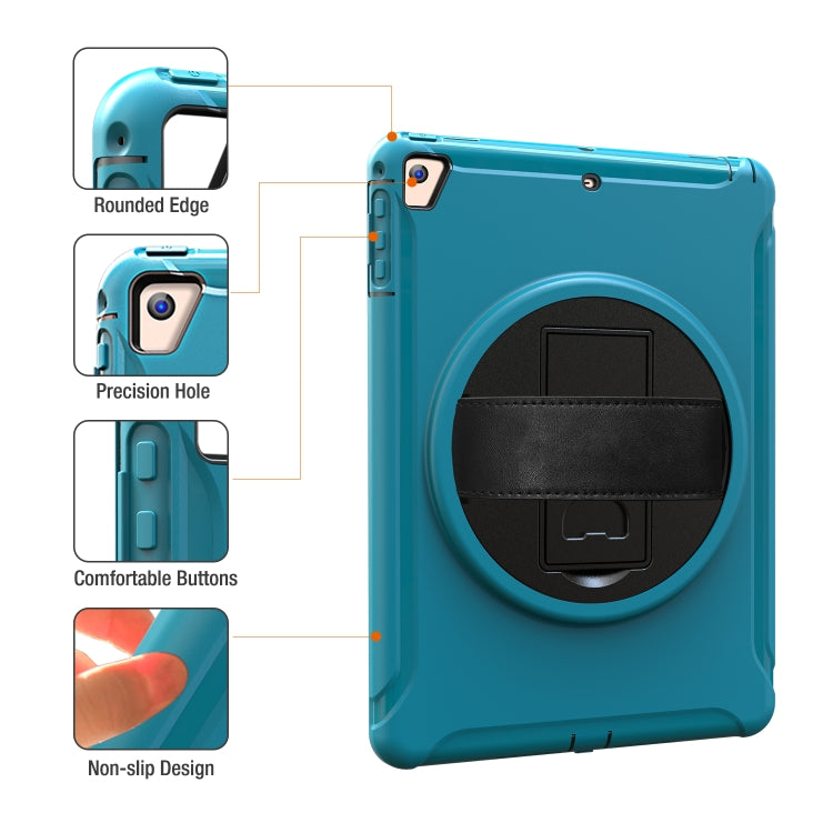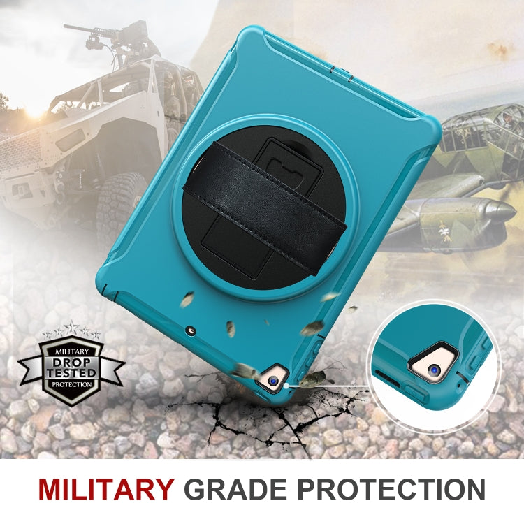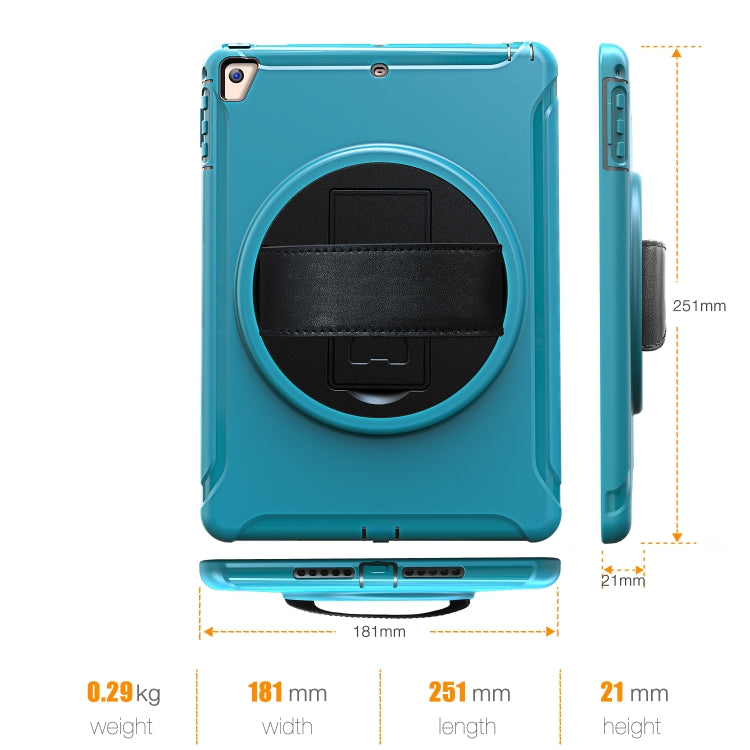 For iPad 9.7 inch (2017) 360 Degree Rotation PC+TPU Protective Cover with Holder & Hand Strap(Light Blue)