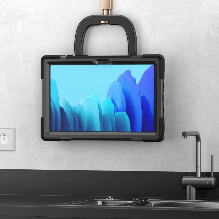 For iPad 9.7 inch (2018/2017) Silicone + PC Protective Case with Holder & Shoulder Strap(Black+Black)