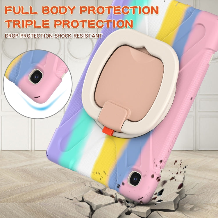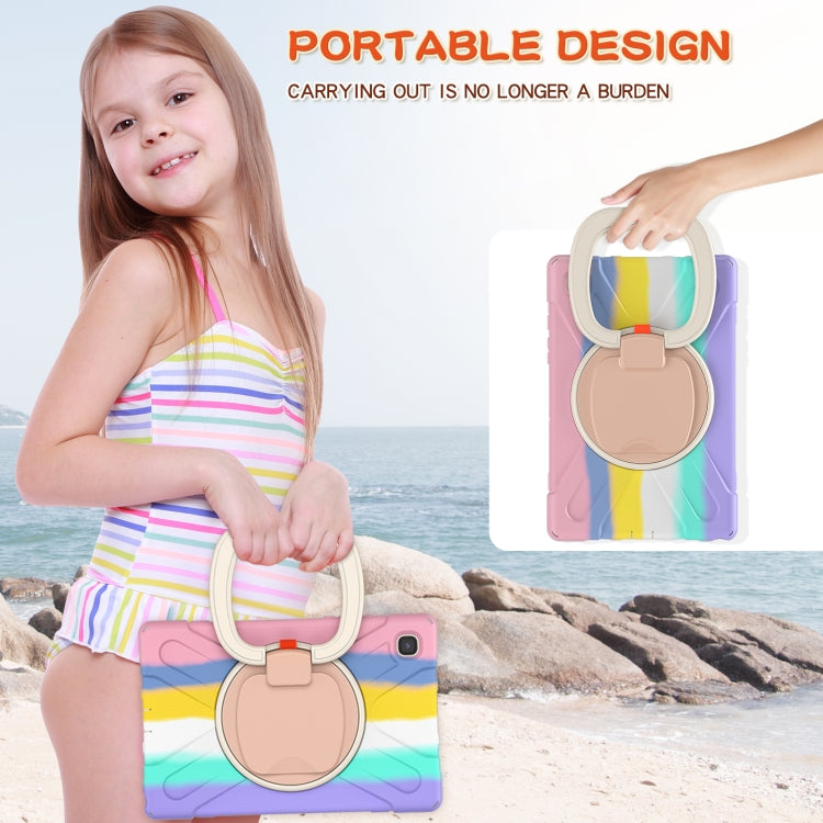 For iPad 9.7 inch (2018/2017) Silicone + PC Protective Case with Holder & Shoulder Strap(Colorful Pink)