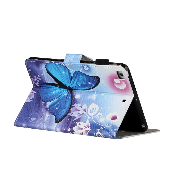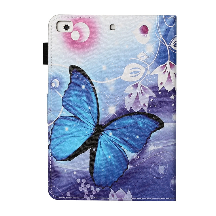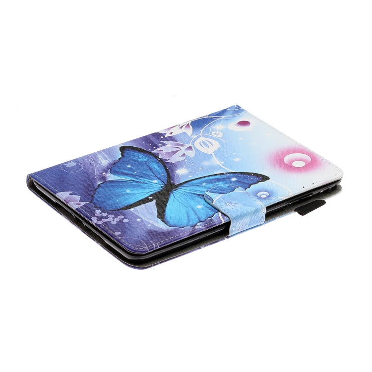 For iPad Mini 2019 & 4 & 3 & 2 & 1 Colored Drawing Pattern Horizontal Flip PU Leather Case with Holder & Card Slot & Sleep / Wake-up Function(Blue Butterfly)