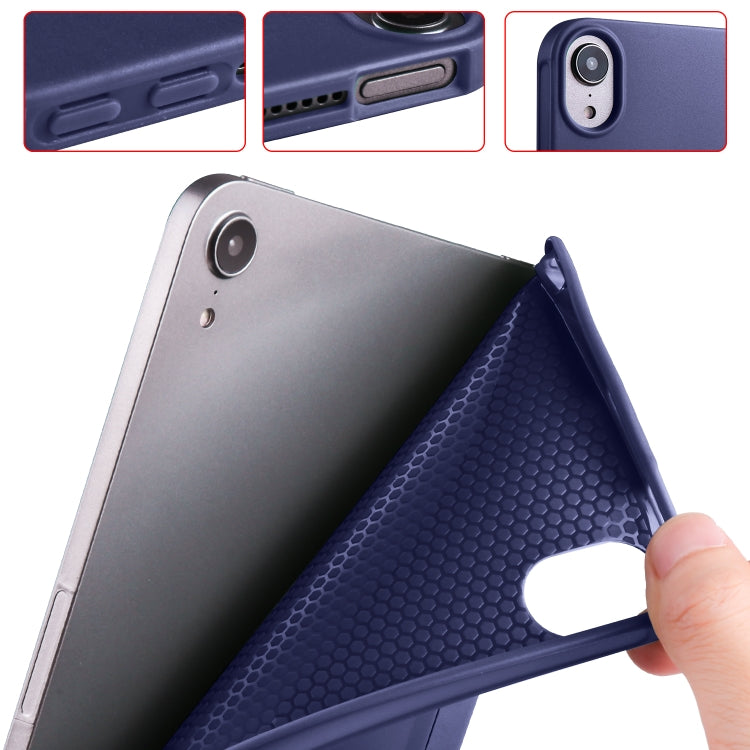 For iPad mini 6 / mini 2024 Honeycomb TPU Leather Tablet Case with 3-Folding Holder(Dark Blue)