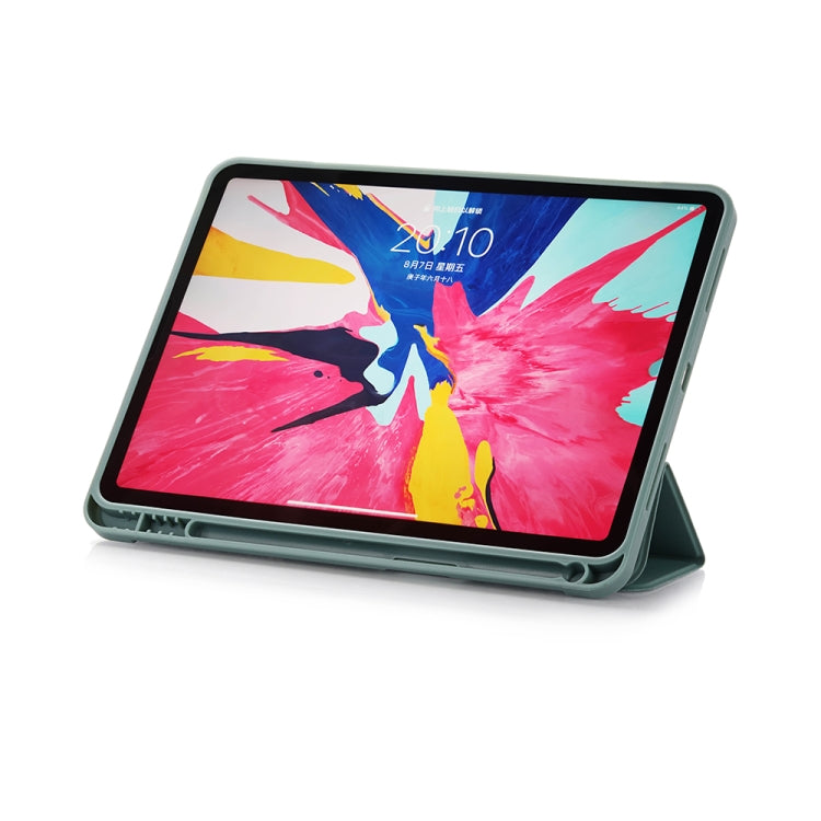 For iPad mini 6 Back Sticker Skin Feel Horizontal Flip Leather Tablet Case with Tri-fold Holder(Dark Green)