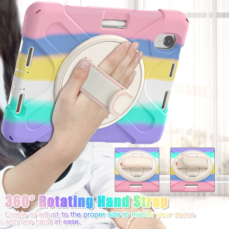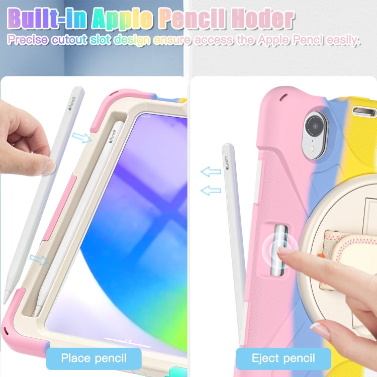 For iPad mini 6 / mini 2024 Silicone Hybrid PC Tablet Case with Grip Holder & Shoulder Strap(Colorful Pink)