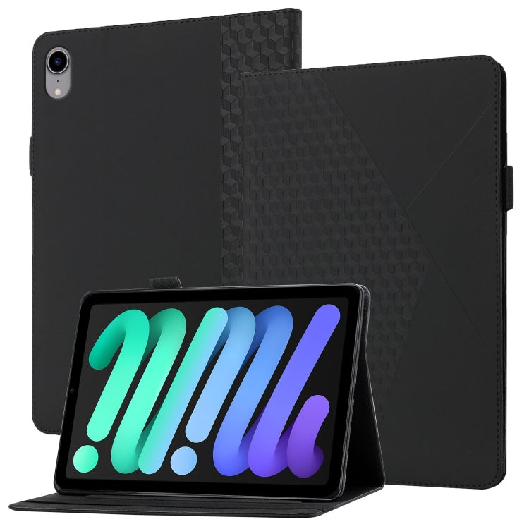 For iPad mini 2024 / mini 6 Rhombus Skin Feel Horizontal Flip Tablet Case with Card Slots & Holder & Sleep / Wake-up Function(Black)