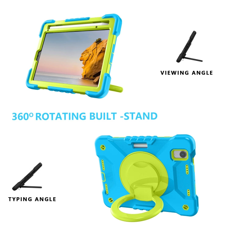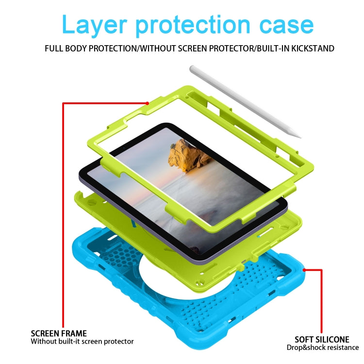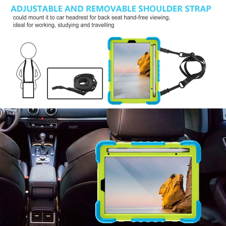 For iPad mini 2024 / mini 6 Silicone + PC Tablet Case with Strap & Holder & Pen Slot(Blue + Green)