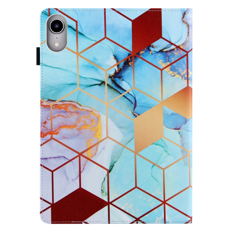 For iPad mini 2024 / mini 6 Silk Texture Horizontal Flip Tablet Leather Case with Holder & Card Slot & Sleep / Wake-up Function(Gold-plated Blue Stitching Marble)