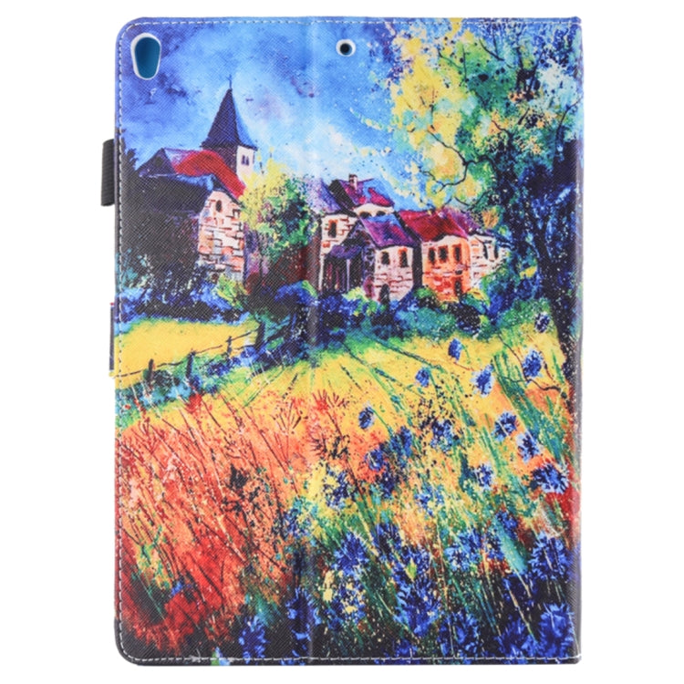 For iPad Pro 10.5 inch Painted Village Pattern Horizontal Flip Leather Case with 3 Gears Holder & Card Slots