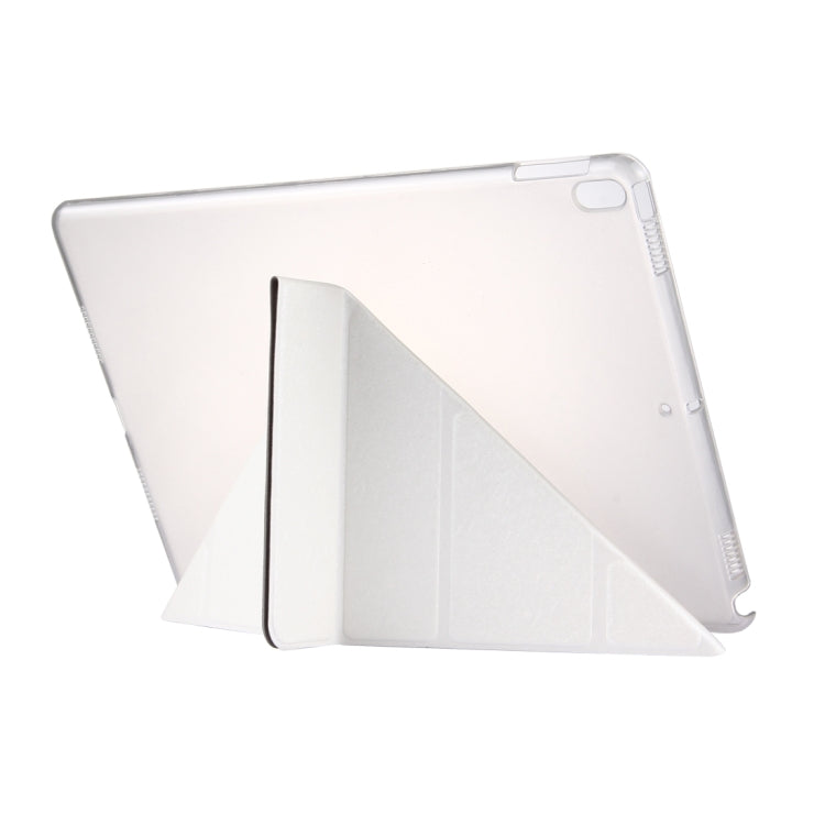For iPad Pro 10.5 inch Silk Texture Horizontal Deformation Flip Leather Case with 4-folding Holder & Sleep / Wake-up(White)