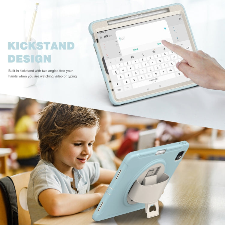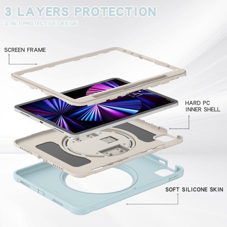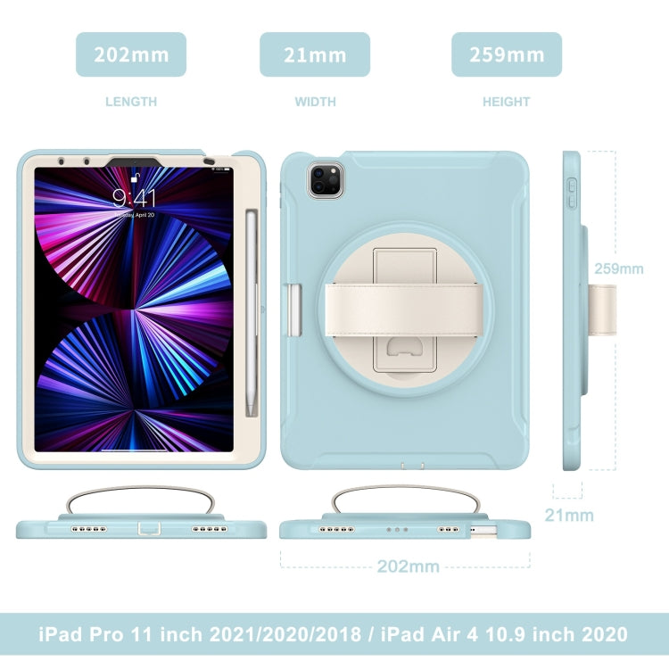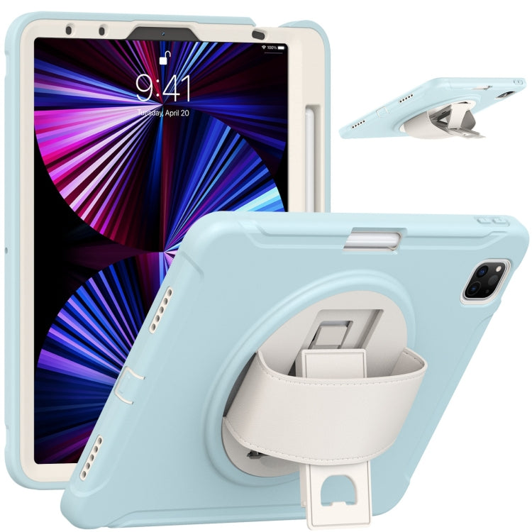 For iPad Pro 11 2022 / 2021 / 2020 / 2018 360 Degree Rotation PC + TPU Protective Tablet Case with Holder & Hand-strap & Pen Slot(Ice Crystal Blue)