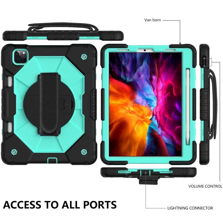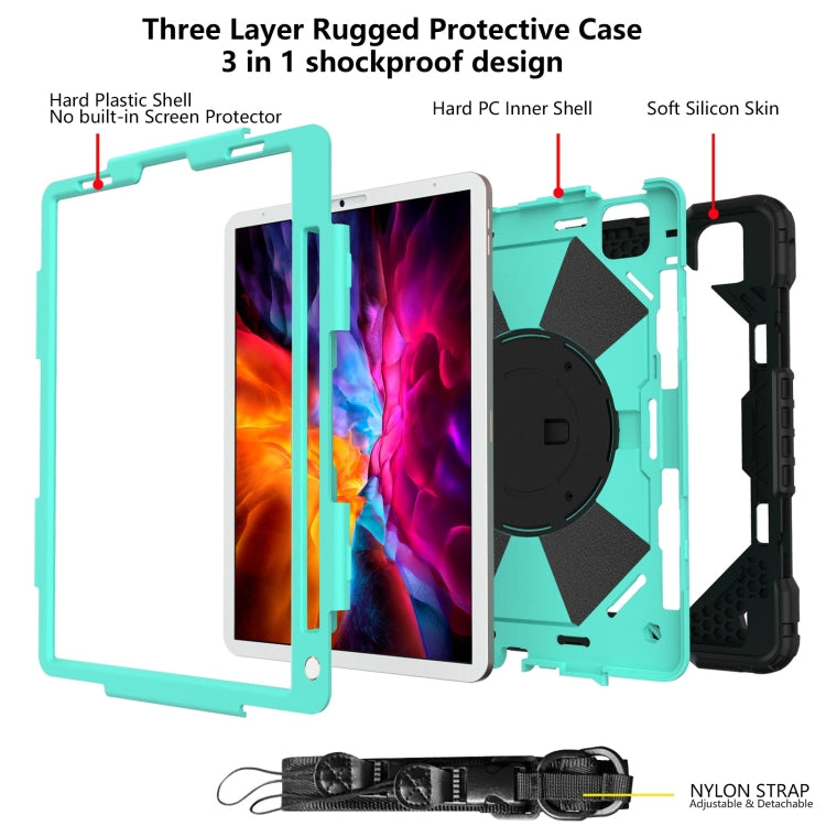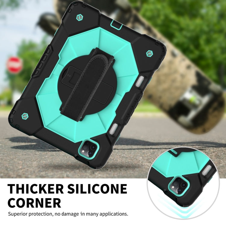 For iPad Pro 11 2022 / 2021 / 2020 / 2018 / Air 2020 10.9 Contrast Color Robot Shockproof Silicone PC Tablet Case with Holder & Shoulder Strap(Black Mint)