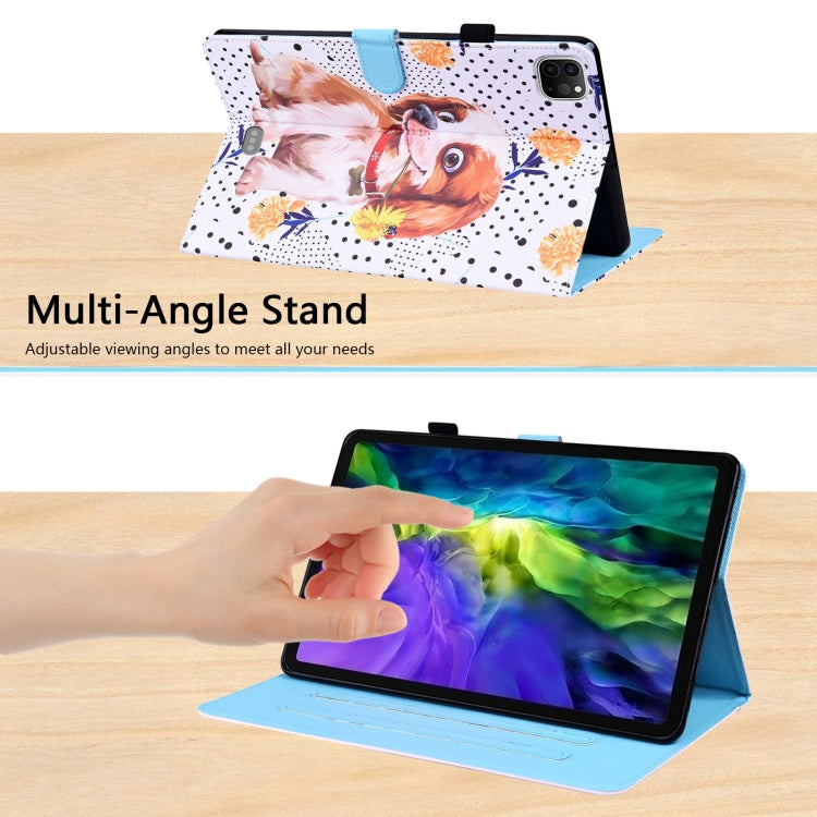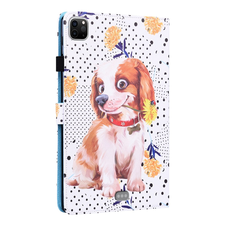 For iPad Pro 11 2022 / 2021 / 2020 / Air 2020 10.9Animal Pattern Horizontal Flip Leather Tablet Case with Holder & Card Slots & Photo Frame & Sleep / Wake-up Function(Little Flower dog)