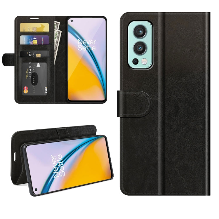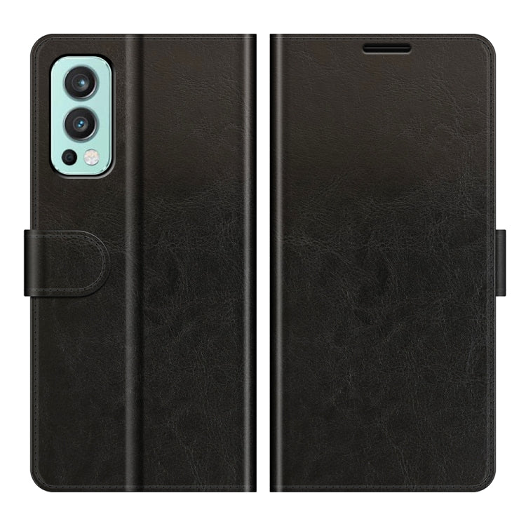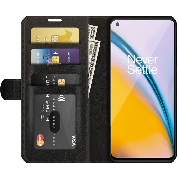 For OnePlus Nord 2 5G R64 Texture Single Horizontal Flip Protective Case with Holder & Card Slots & Wallet& Photo Frame(Black)