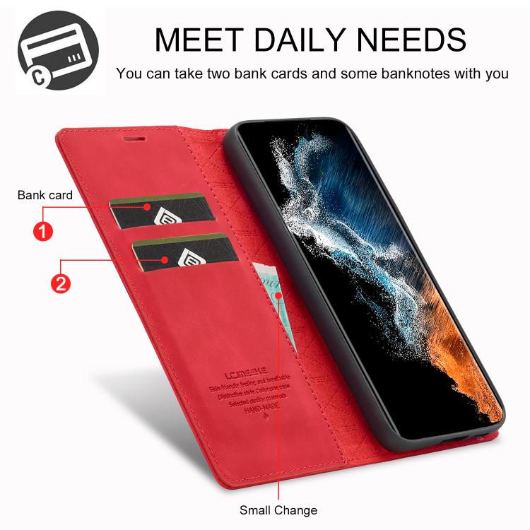 For Samsung Galaxy S25+ 5G LC.IMEEKE Strong Magnetism Microfiber Leather Phone Case(Red)