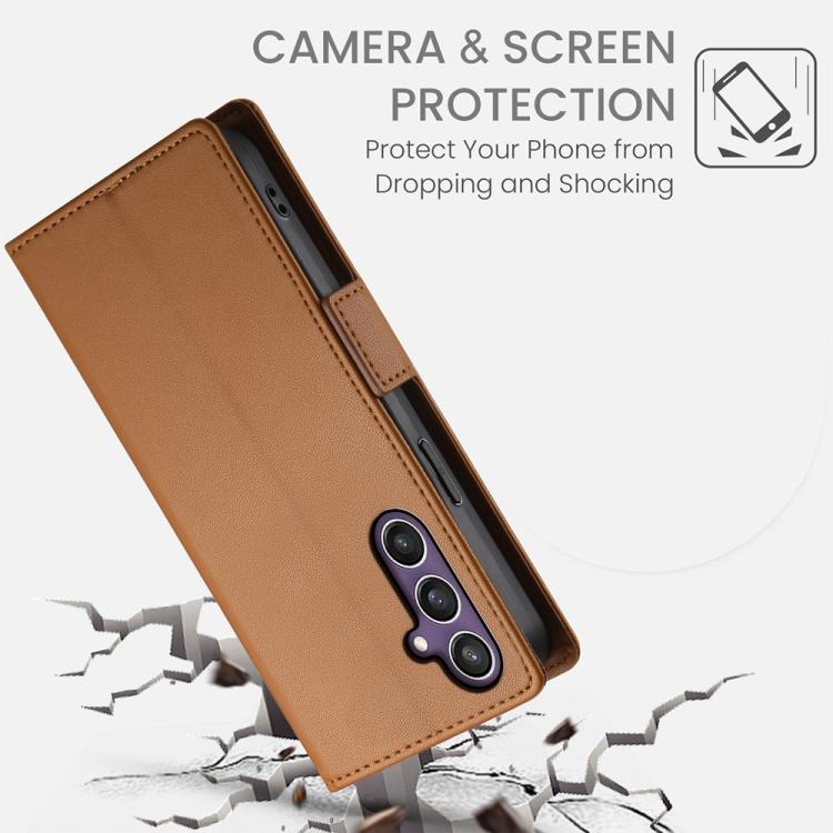 For Samsung Galaxy S25+ 5G Side Buckle Magnetic Frosted Leather Phone Case(Brown)