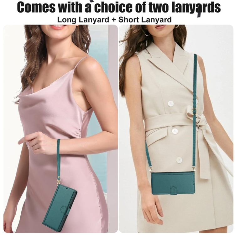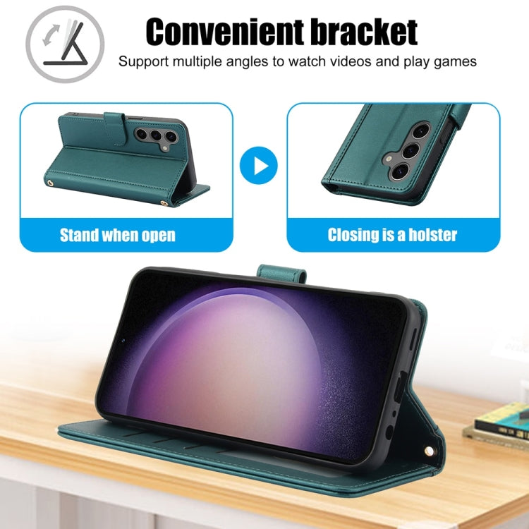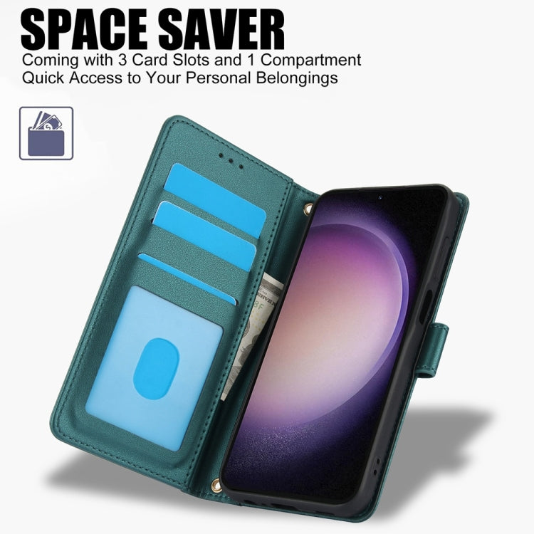 For Samsung Galaxy S25 5G Skin Feel Pure Color Card Slots Leather Phone Case with Dual Lanyard(Green)