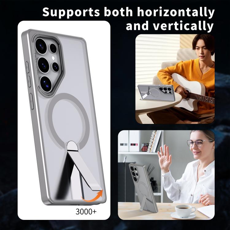For Samsung Galaxy S25 Ultra 5G Star Shine Series TPU + PC MagSafe Phone Case with Fold Holder(Grey)