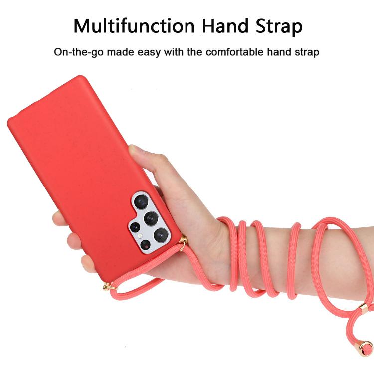 For Samsung Galaxy S25 Ultra 5G Wheat Straw Material Hybrid TPU Phone Case with Lanyard(Red)