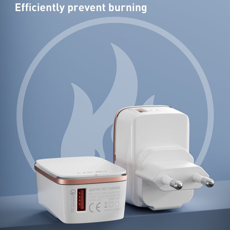 LDNIO A1204Q QC3.0 18W USB Fast Charger with 1m USB to 8 Pin Cable, Plug Type:US Plug(White Gold)