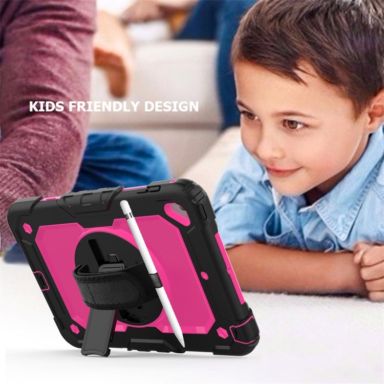 Shockproof Black Silica Gel + Colorful PC Protective Case for iPad Mini 2019 / Mini 4, with Holder & Shoulder Strap & Hand Strap & Pen Slot(Rose Red)
