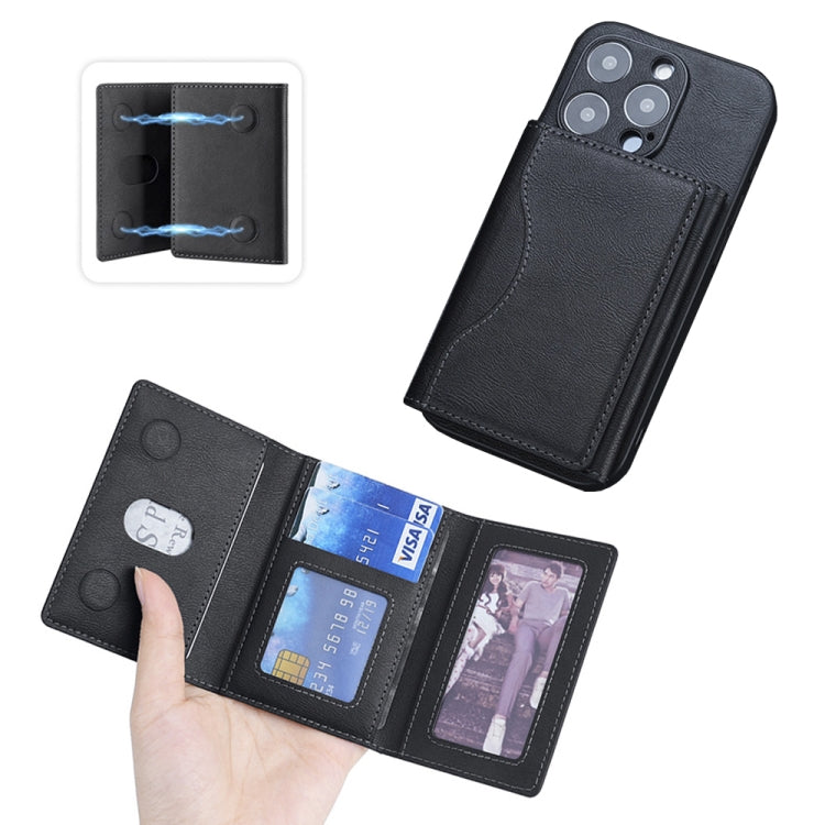 Tri-fold Wallet Phone Holder MagSafe Leather Card Bag(Green)