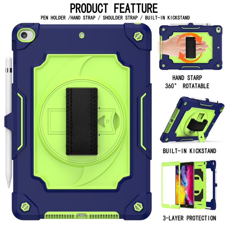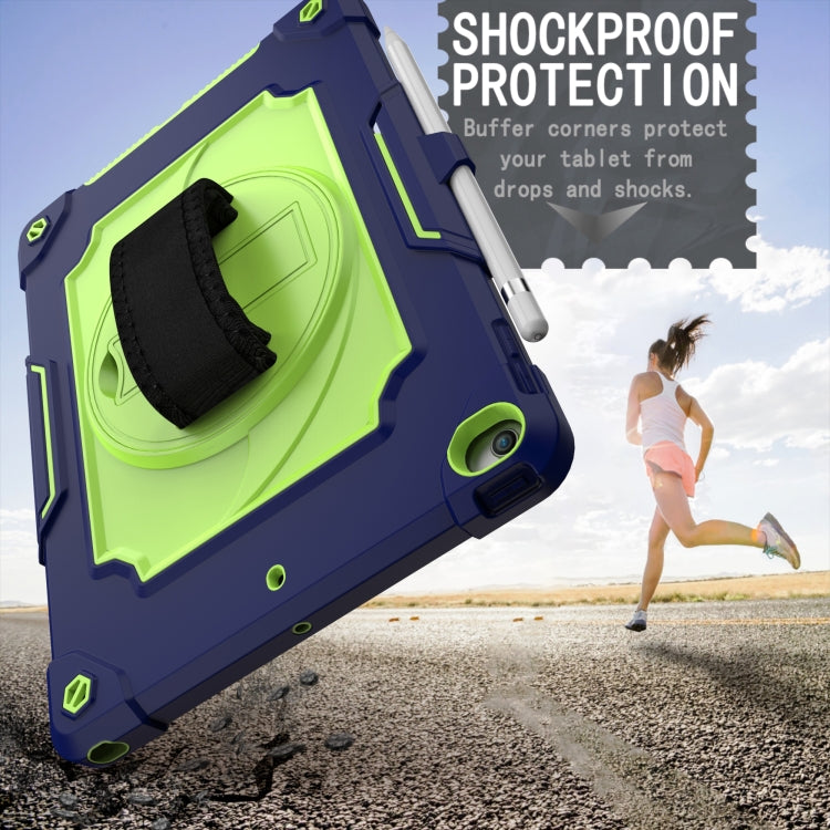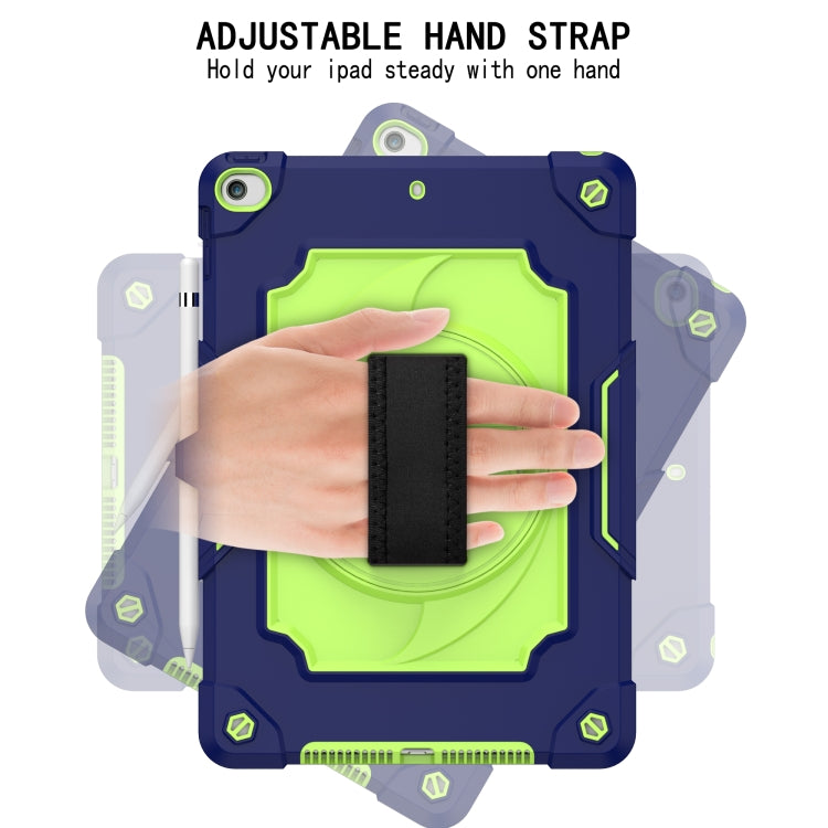 360 Degree Rotation Turntable Contrast Color Robot Shockproof Silicone + PC Protective Case with Holder For iPad 10.2 / 10.2 (2020) / Pro 10.5(Navy Blue + Yellow Green)