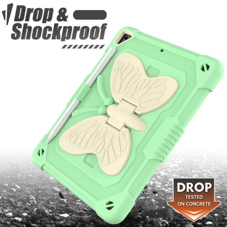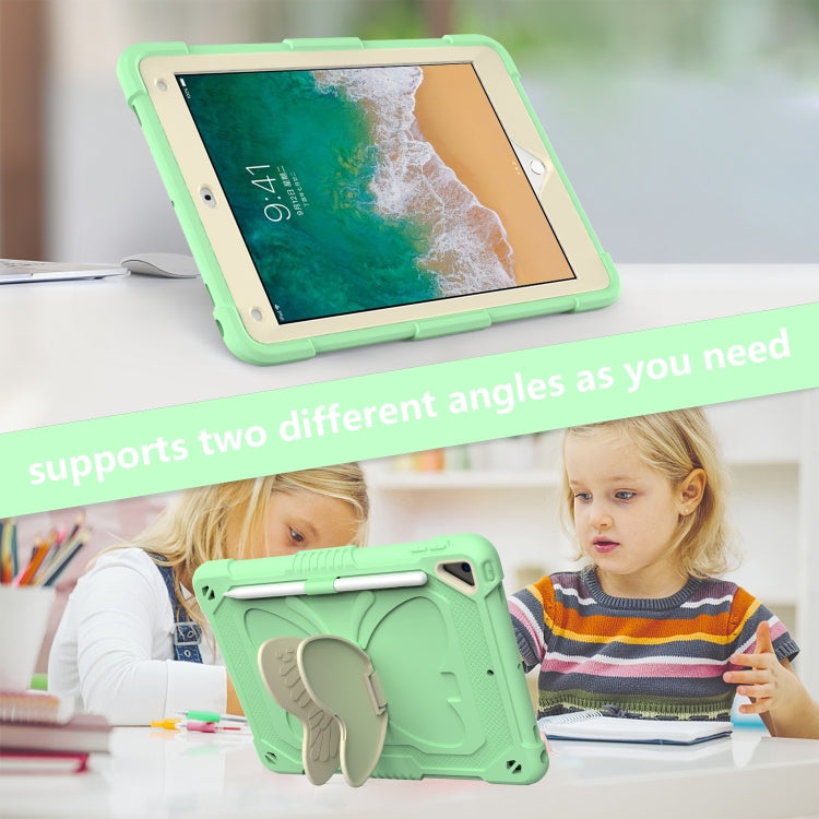 Beige PC + Silicone Anti-drop Protective Case with Butterfly Shape Holder & Pen Slot For iPad 9.7 2018 & 2017 / Pro 9.7 inch / Air 2 / 6(Beige + Fresh Green)