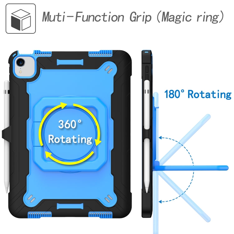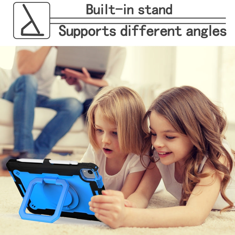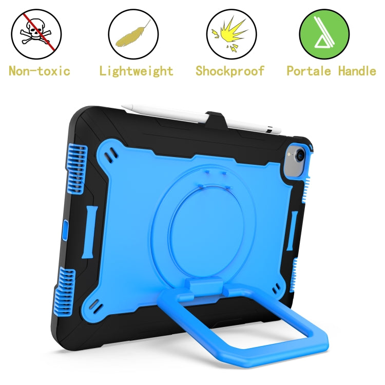 Contrast Color Shockproof Robot Silicone + PC Case with Wristband Holder For iPad Air 2022 / 2020 10.9(Black + Blue)