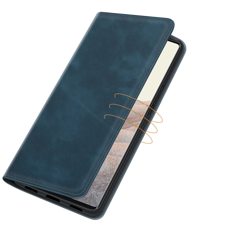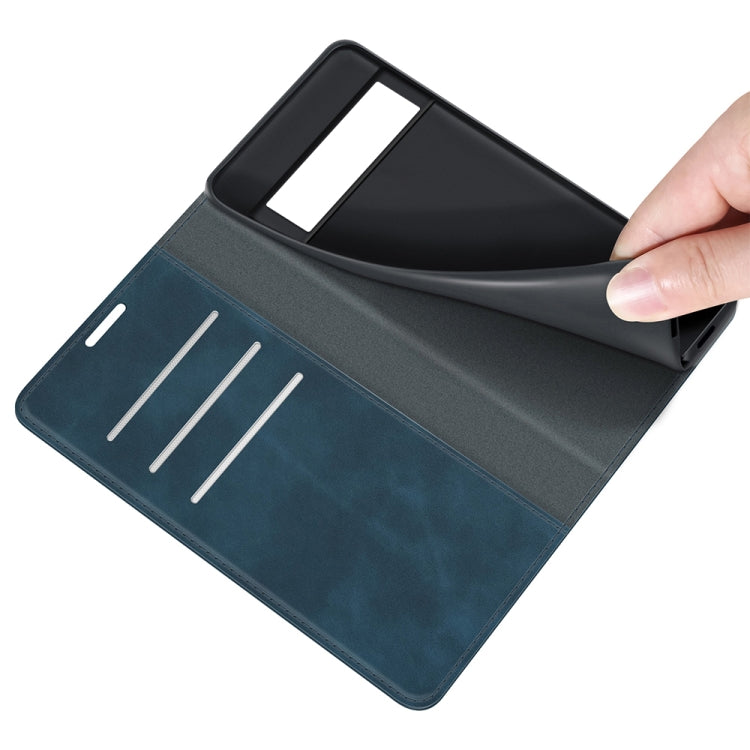 For Google Pixel 6 Pro Retro-skin Business Magnetic Suction Leather Case with Holder & Card Slots & Wallet(Dark Blue)