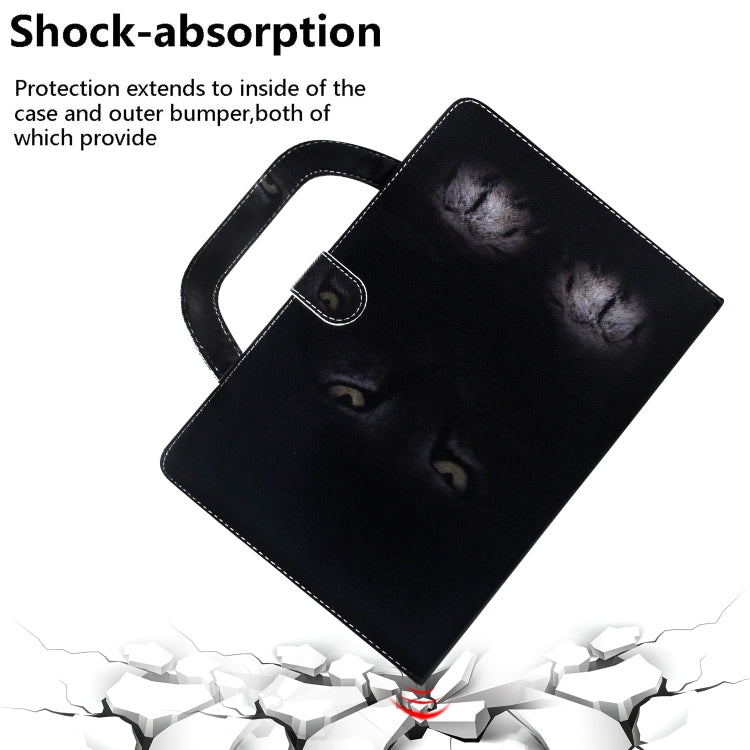 For iPad 10.2 / 10.5 / Air 2019 3D Colored Drawing Horizontal Flip Leather Case with Holder & Card Slot & Wallet & Handle(Mysterious Cat)