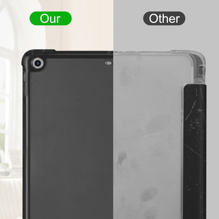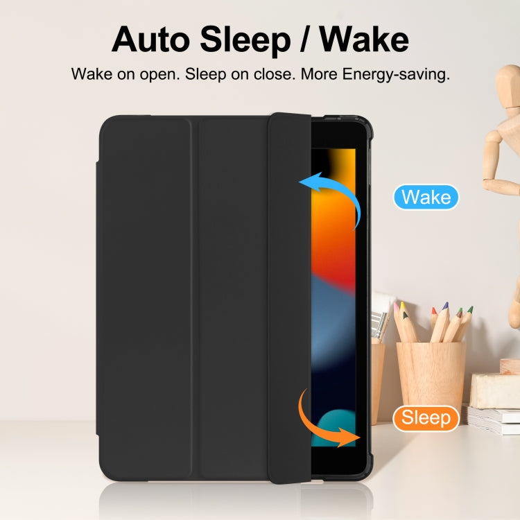 For iPad 10.2 2021 / 2020 / 2019 Tri-fold Holder TPU Cover Frosted Leather Smart Tablet Case withh Pen Slot(Black)