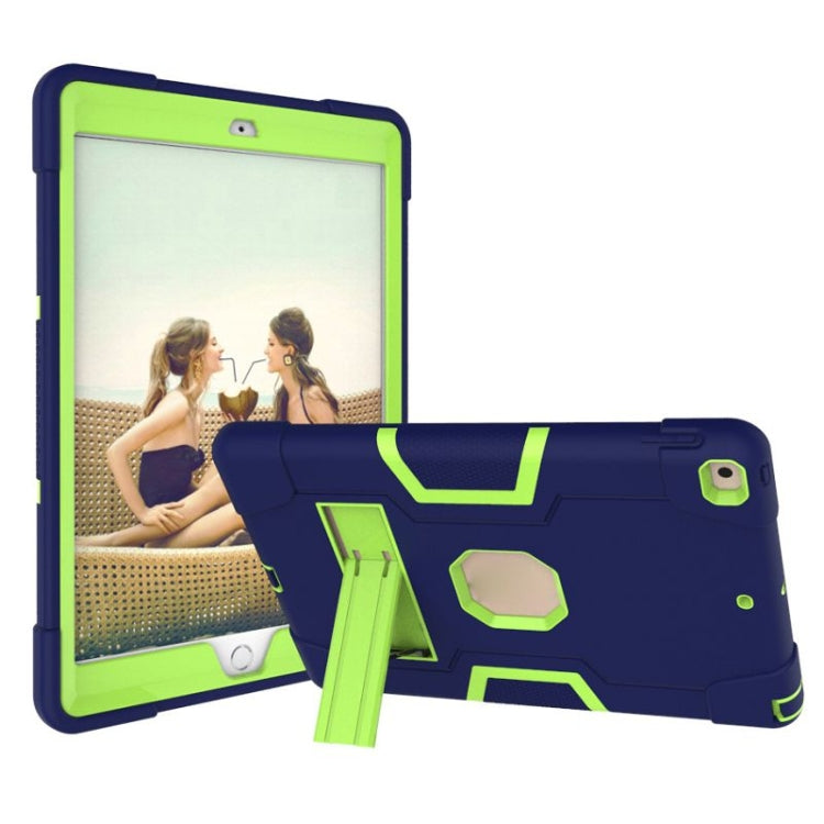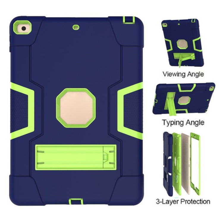For iPad 10.2 Contrast Color Silicone + PC Combination Case with Holder(Navy Blue +Olivine)