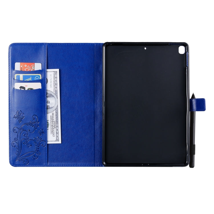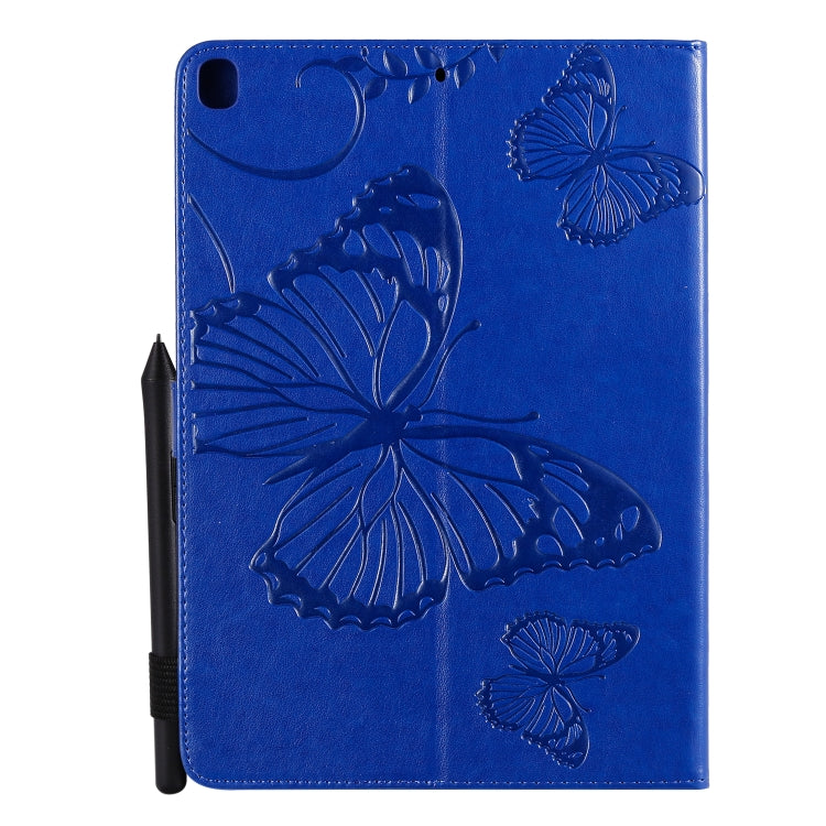 For iPad 10.2 / Pro 10.5 / Air 2019 Pressed Printing Butterfly Pattern Horizontal Flip PU Leather Case with Holder & Card Slots & Wallet & Pen Slot(Blue)