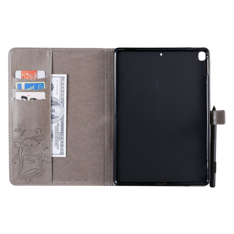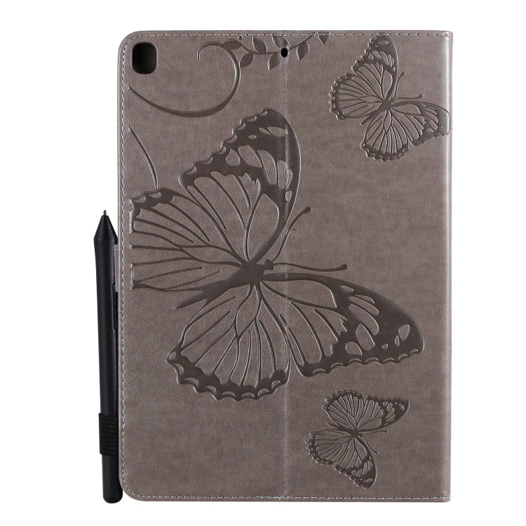 For iPad 10.2 / Pro 10.5 / Air 2019 Pressed Printing Butterfly Pattern Horizontal Flip PU Leather Case with Holder & Card Slots & Wallet & Pen Slot(Grey)
