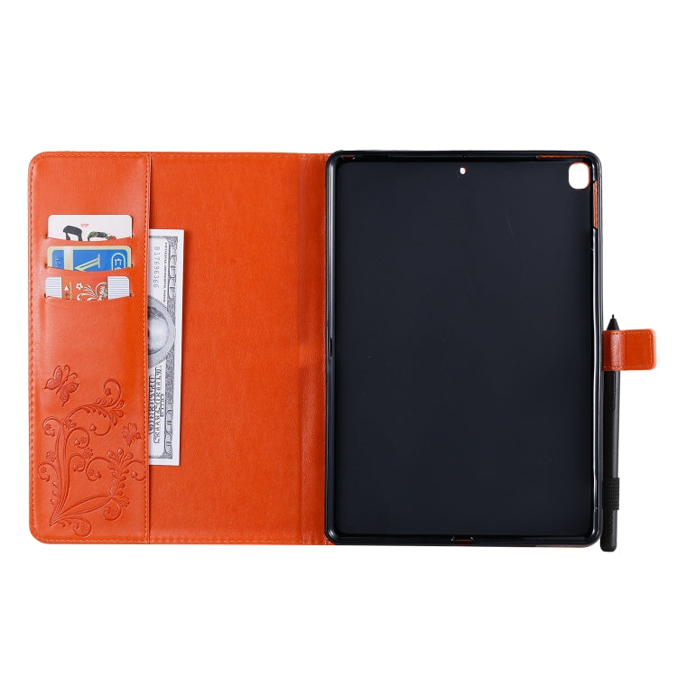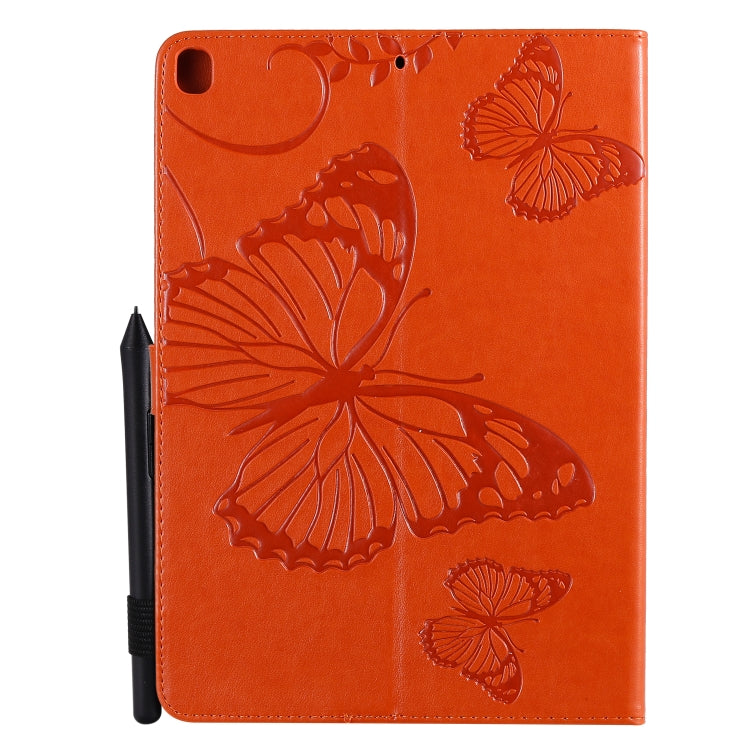 For iPad 10.2 / Pro 10.5 / Air 2019 Pressed Printing Butterfly Pattern Horizontal Flip PU Leather Case with Holder & Card Slots & Wallet & Pen Slot(Orange)