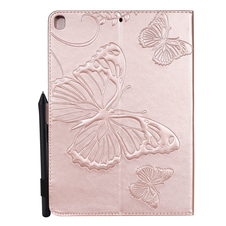 For iPad 10.2 / Pro 10.5 / Air 2019 Pressed Printing Butterfly Pattern Horizontal Flip PU Leather Case with Holder & Card Slots & Wallet & Pen Slot(Rose Gold)