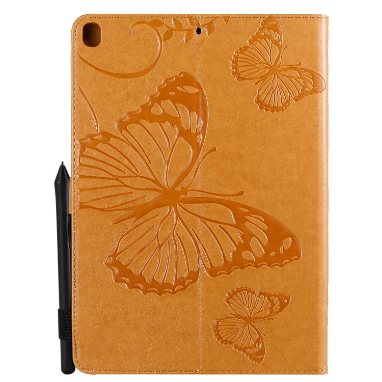 For iPad 10.2 / Pro 10.5 / Air 2019 Pressed Printing Butterfly Pattern Horizontal Flip PU Leather Case with Holder & Card Slots & Wallet & Pen Slot(Yellow)