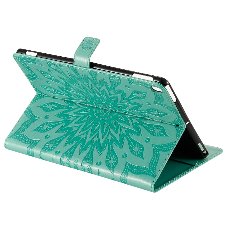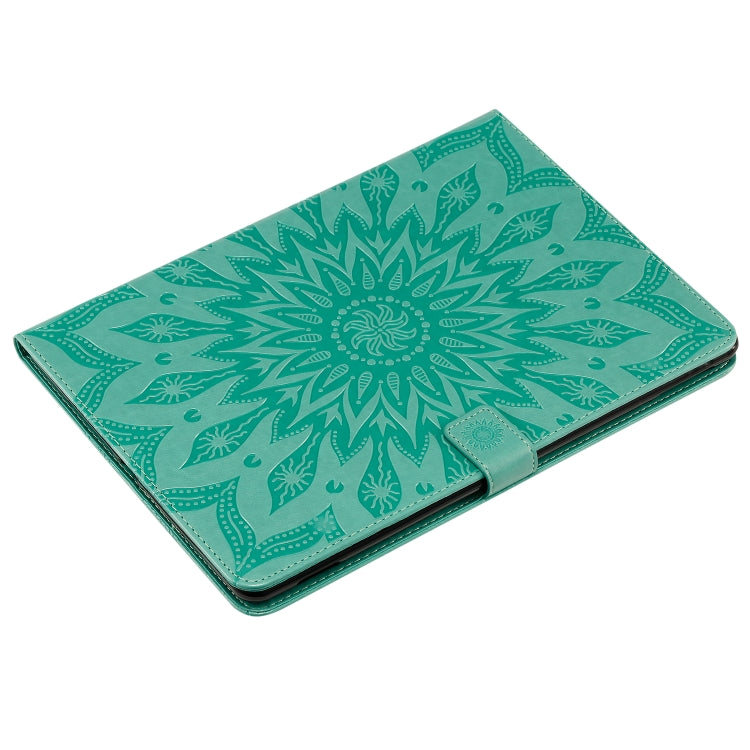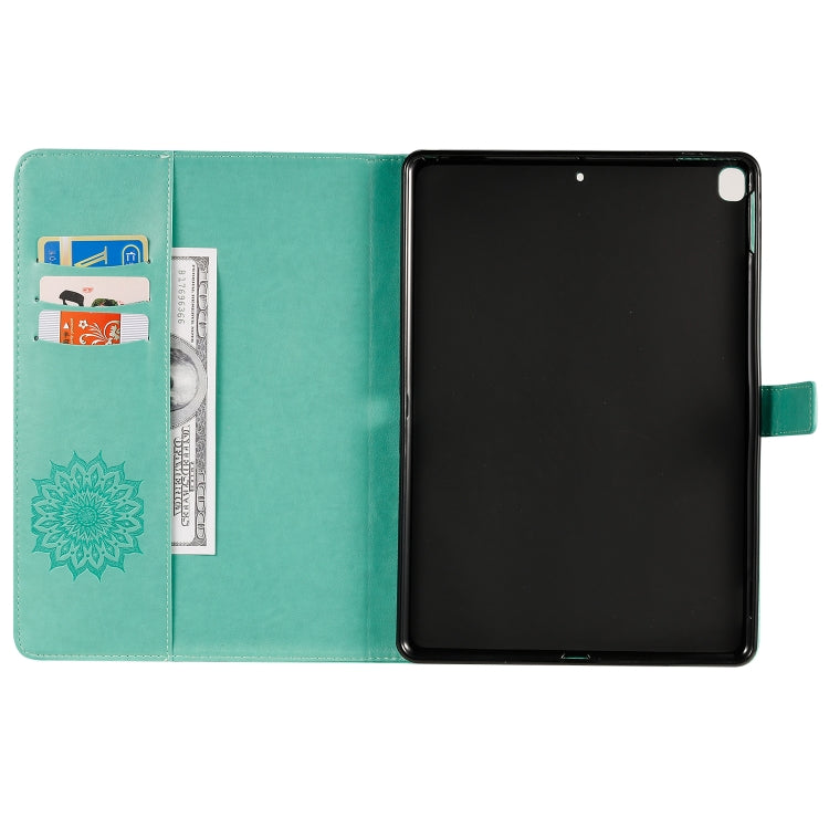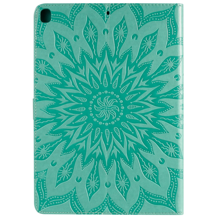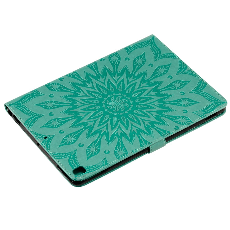 For iPad 10.2 / Pro 10.5 / Air 2019 Pressed Printing Sun Flower Pattern Horizontal Flip Leather Case with Holder & Card Slots & Wallet(Green)