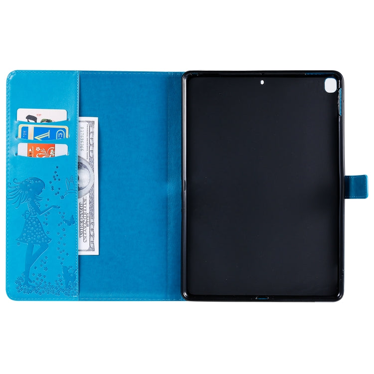 For iPad 10.2 / Pro 10.5 / Air 2019 Pressed Printing Woman and Cat Pattern Horizontal Flip Leather Case with Holder & Card Slots & Wallet(Blue)