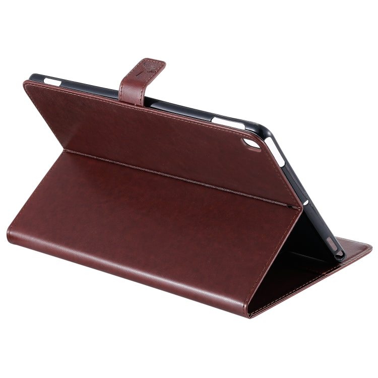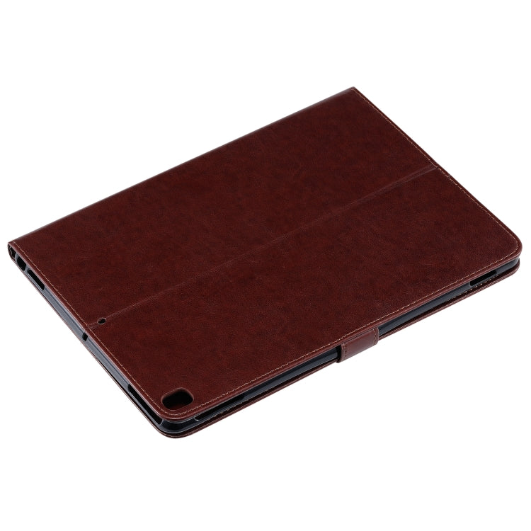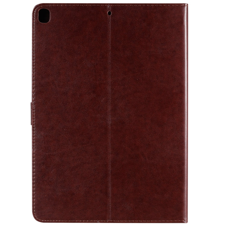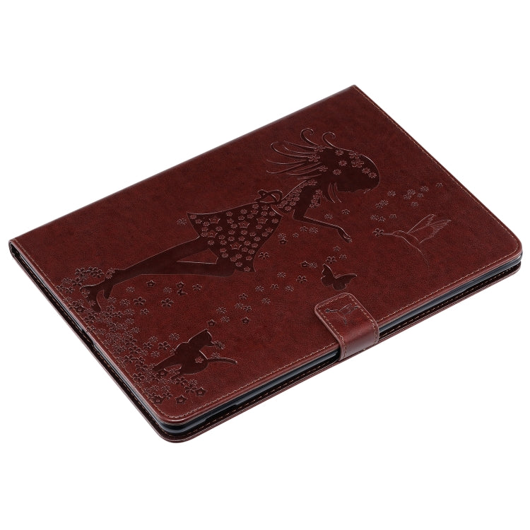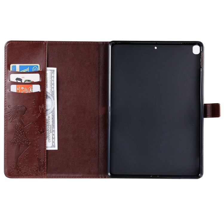 For iPad 10.2 / Pro 10.5 / Air 2019 Pressed Printing Woman and Cat Pattern Horizontal Flip Leather Case with Holder & Card Slots & Wallet(Brown)