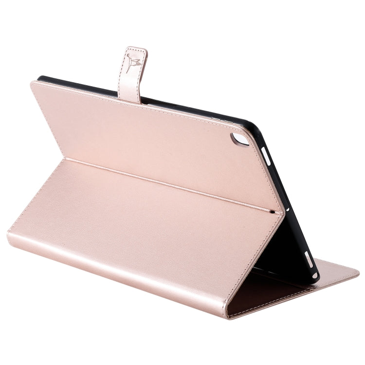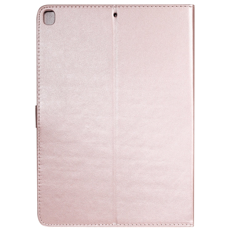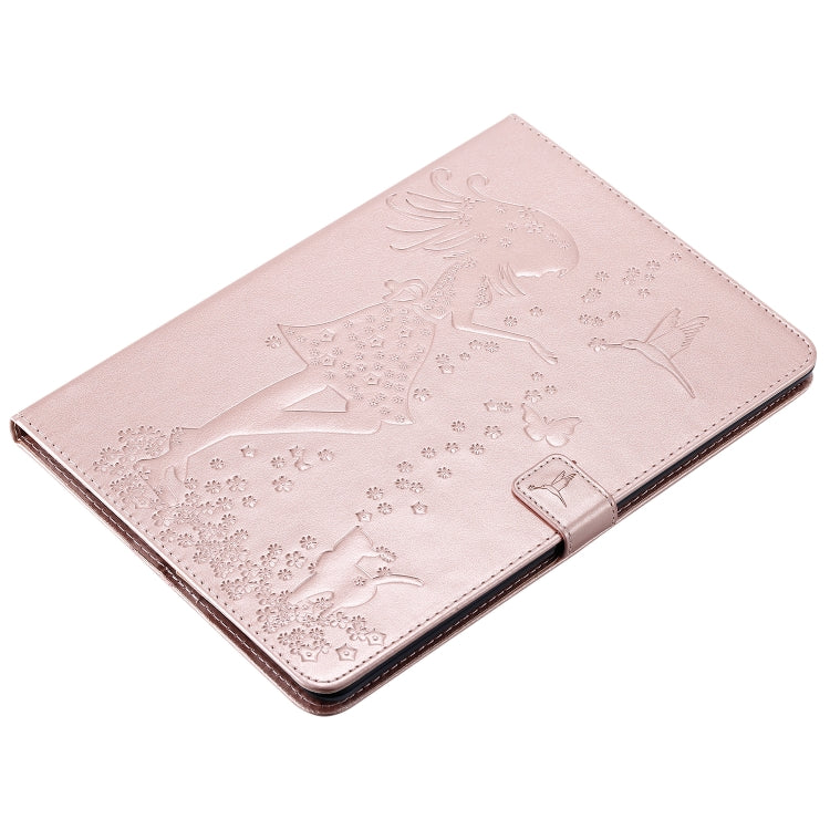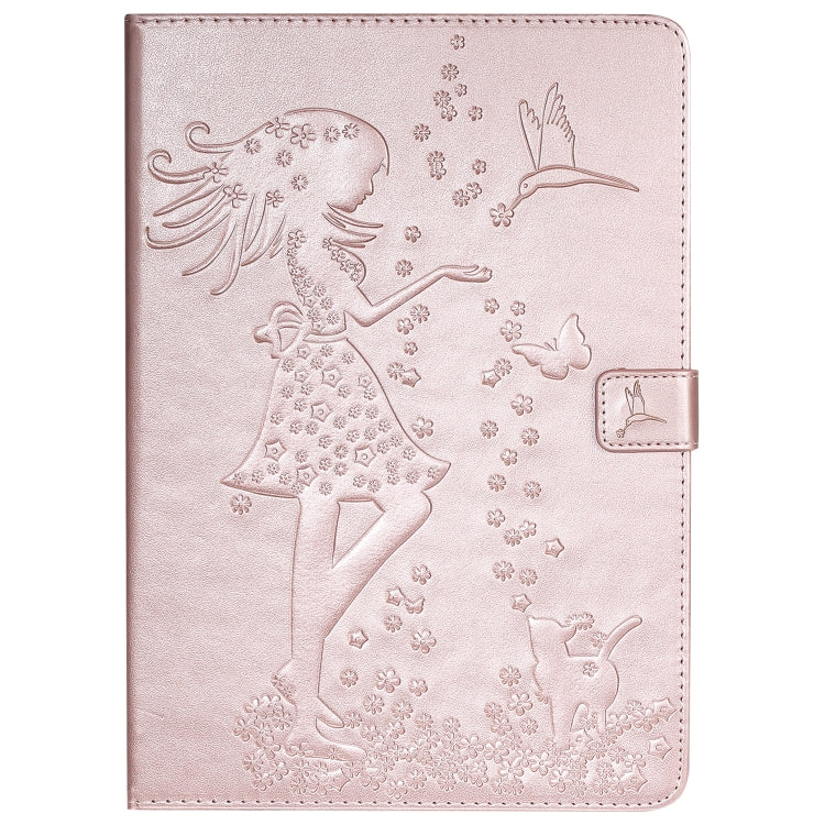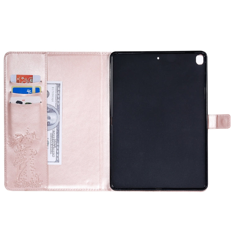 For iPad 10.2 / Pro 10.5 / Air 2019 Pressed Printing Woman and Cat Pattern Horizontal Flip Leather Case with Holder & Card Slots & Wallet(Rose Gold)