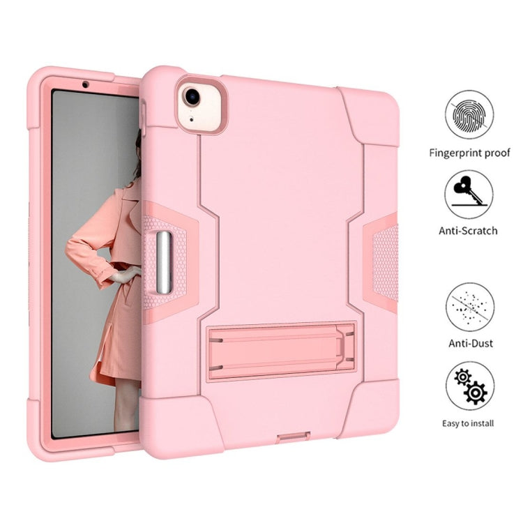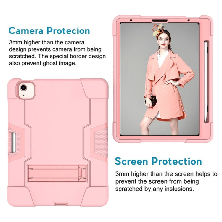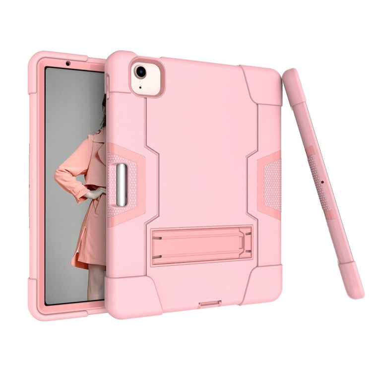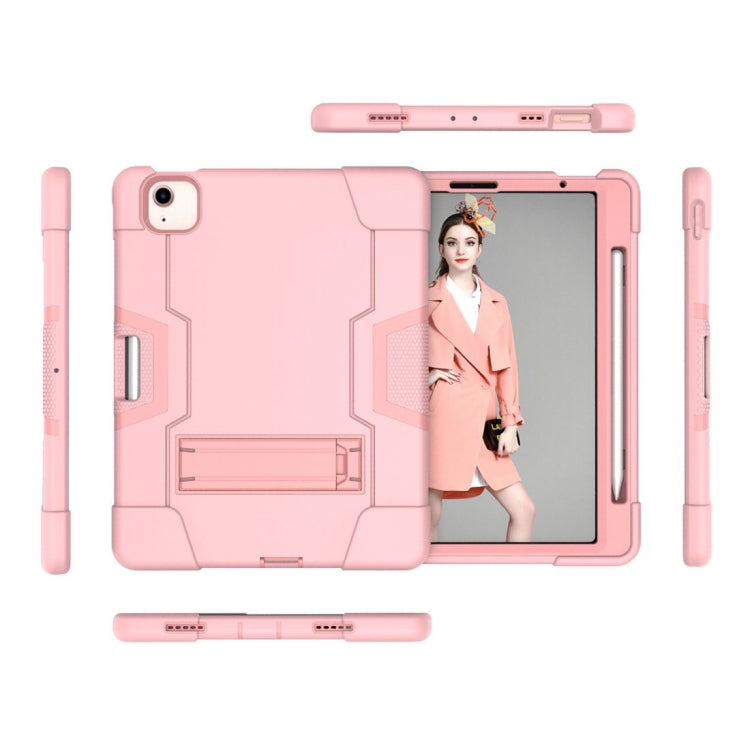 For iPad Air 2022 / 2020 10.9 Contrast Color Robot Shockproof Silicon + PC Protective Case with Holder & Pen Slot(Rose Gold)