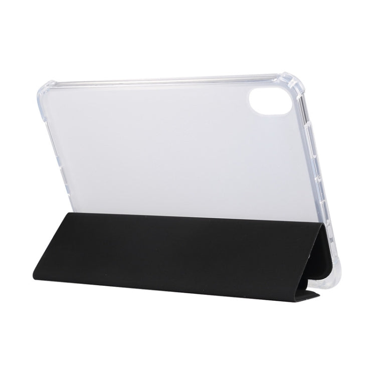 For iPad mini 6 / mini 2024 Voltage Skin Texture Transparent TPU Smart Leather Tablet Case with 3-Folding Holder & Pen Slot(Black)