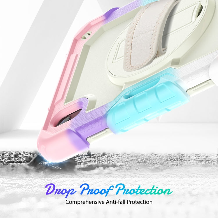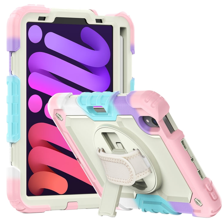For iPad mini 2024 / mini 6 Shockproof Silicone + PC Protective Tablet Case with Holder & Shoulder Strap & Pen Slot(Beige + Camouflage Pink)