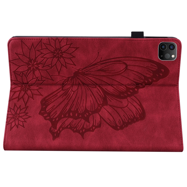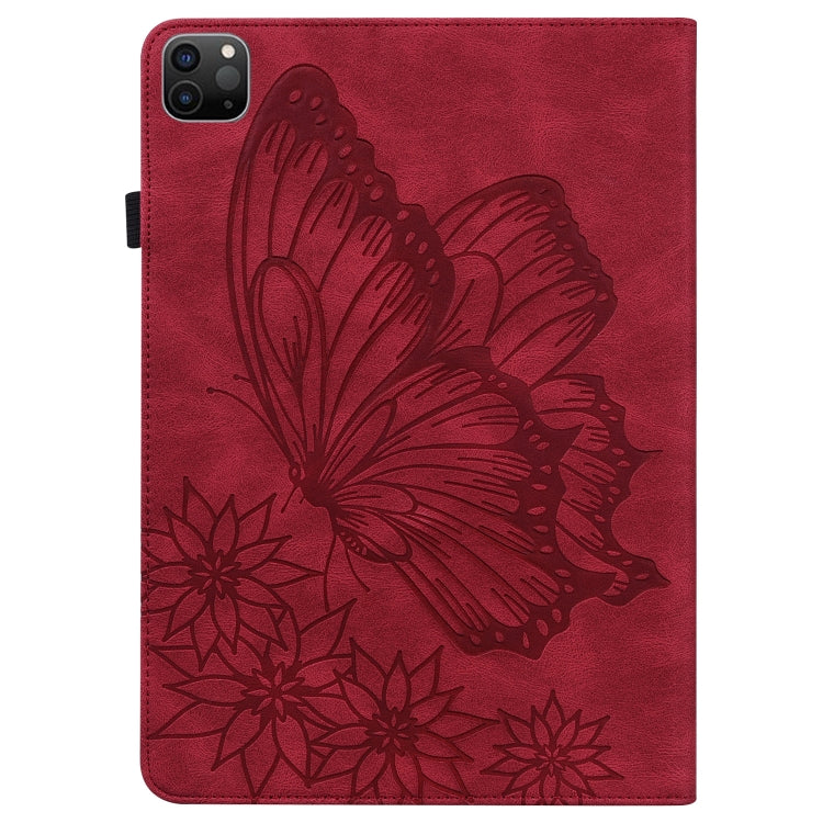 For iPad Pro 11 2022 / 2021 / 2020 / Air 2020 10.9 / 11 2024 Big Butterfly Embossed Smart Leather Tablet Case(Red)