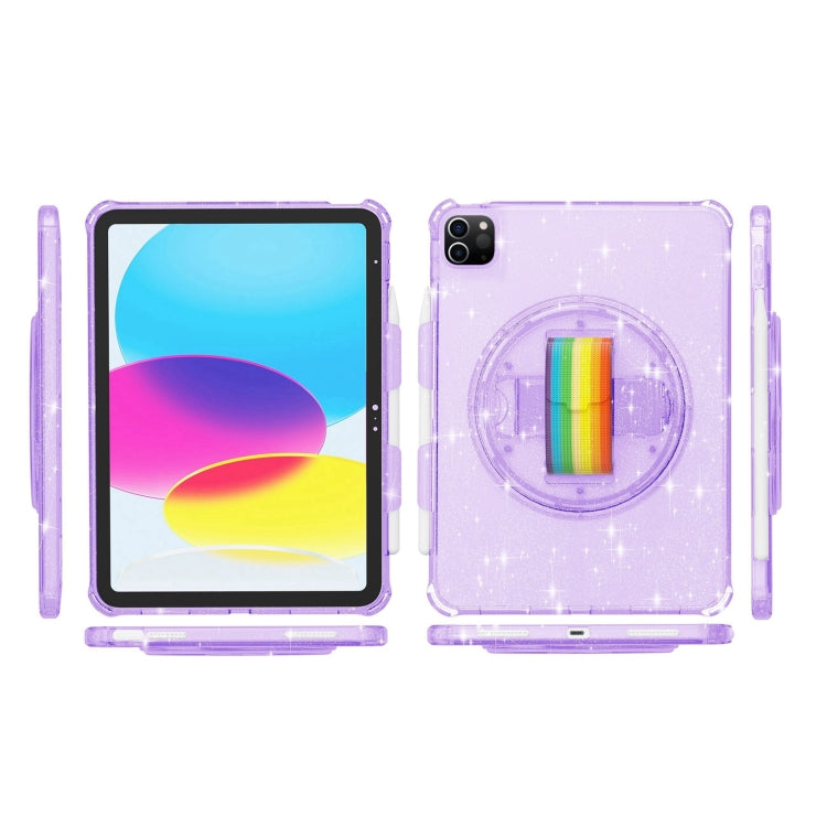 For iPad Pro 11 2022 / 2021 Terminator Shockproof Glitter Powder Tablet Case with Grip Strap(Purple)
